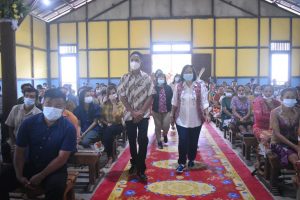 LINTASKAPUAS | SINTANG – Sekretaris Daerah Kabupaten Sintang Dra. Yosepha Hasnah, M.Si menyaksikan pentasbihan perdana tiga Pastor di Desa Kepala Jungai Kecamatan Ambalau Kabupaten, Rabu 26 Januari 2022 sore.