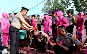 Tradisi penyiraman kepana anggota kepolisian resort Sintang yang mendapat anugerah kenaikan pangkat