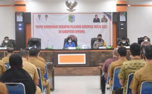 Pemerintah Kabupaten Sintang merencanakan hari pencoblosan pada Pemilihan Kepala Desa (Pilkades) pada 297 Desa akan dilaksanakan pada 7 Juli 2021 mendatang. Rakor dilaksanakan dengan tujuan untuk menyamakan presepsi dan melihat progress persiapan , pelaksanaan tahap yang ada, baik tingkat Desa, Kecamatan dan kabupaten.