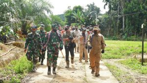 LINTASKAPUAS I KETAPANG – Bupati Ketapang Martin Rantan bersama Danrem 121/ABW Brigjend Tni Ronny meninjau pekerjaan program TNI Manunggal Membangun Desa (TMMD) ke – 108 Kodim 1203 Ketapang di Desa Beringin Rayo Kecamatan Tumbang Titi, Kamis (23/7/2020).