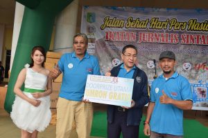 Jalan sehat yang diselenggarakan oleh Ikatan Jurnalis Sintang tersebut juga menyajikan puluhan Doorprize dan dua buah tiket Umroh Gratis yang dipersembahkan langsung oleh, H. Sukiman.