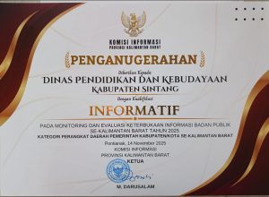LINTASKAPUAS | SINTANG – Dinas Pendidikan dan Kebudayaan Kabupaten Sintang berhasil meraih Anugerah Penghargaan dengan predikat Informatif dalam monitoring dan evaluasi keterbukaan informasi badan publik yang digelar oleh Komisi Informasi Provinsi Kalimantan Barat.