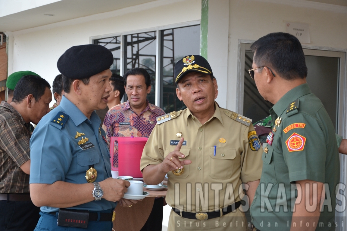 Bupati Sintang, Milton Crosby berbincang dengan tim Kemenkopolhukam ketika meninjau Stadion Baning
