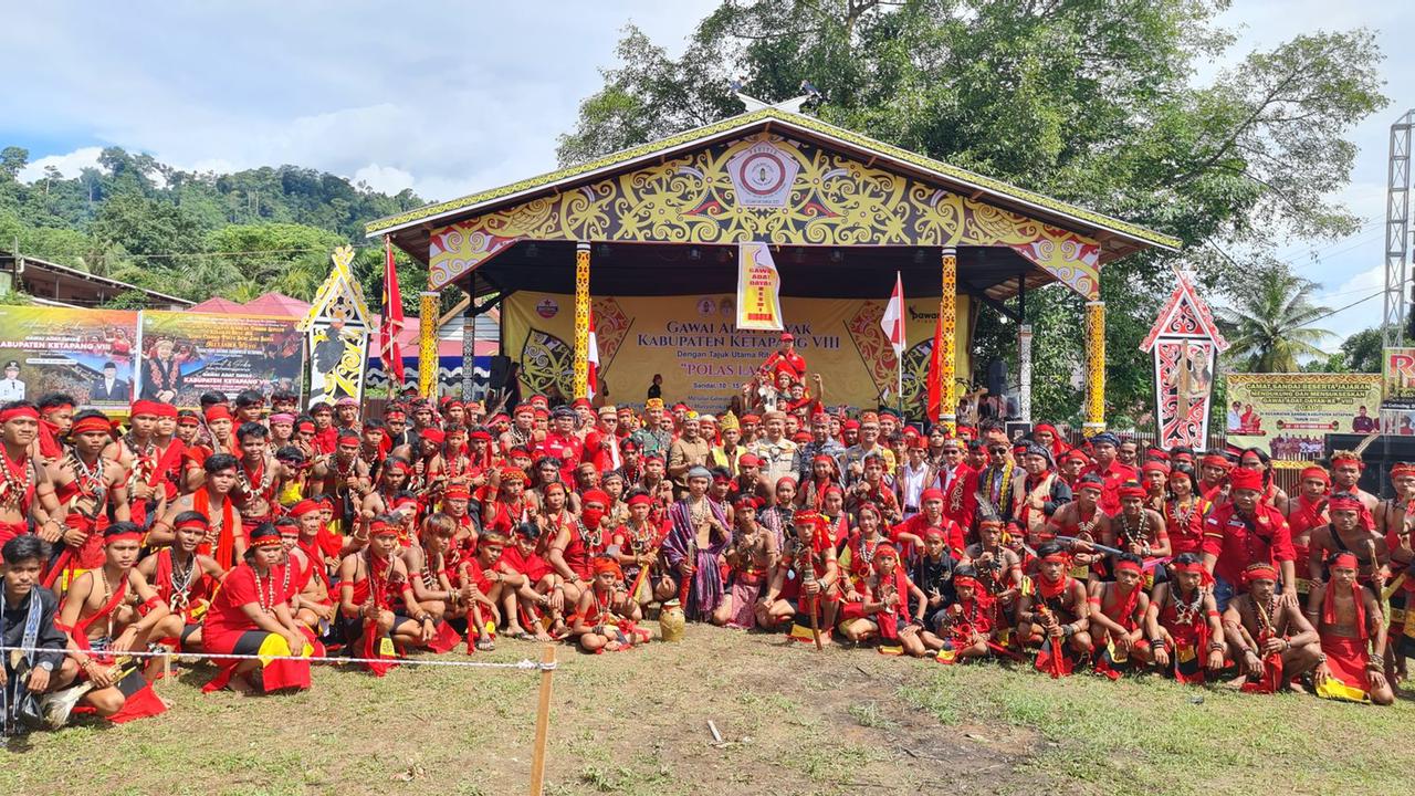 Sesi Foto bersama saat pembukaan Gawai Adat Dayat ke-VIII di Kecamatan Sandai. (Foto Ist)