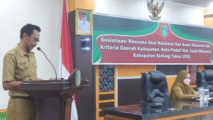 LINTASKAPUAS | SINTANG – Pemerintah Kabupaten Sintang melakukan persiapan untuk penilaian Kabupaten Sintang sebagai Kabupaten Peduli Hak Asasi Manusia Tahun 2022. Hal tersebut terungkap saat Sekretaris Daerah Kabupaten Sintang yang diwakili Asisten Administrasi Umum Drs. Igor Nugroho, M.Si membuka pelaksanaan Sosialisasi Rencana Aksi Nasional Hak Asasi Manusia dan Kriteria Daerah Kabupaten/Kota Peduli Hak Asasi Manusia Kabupaten Sintang Tahun 2022 di ruang Balai Praja Kantor Bupati Sintang pada Selasa, 8 Februari 2022.
