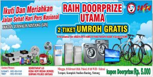 Hadiah utama berupa paket umroh ini berkat kerjasama antara Ikatan Jurnalis Sintang (IJS) dengan Anggota DPR-RI, Dapil Kalbar, Sukiman. Anggota Komisi XI ini rencananya akan memeriahkan jalan sehat mendampingi Bupati Sintang Jarot Winarno.