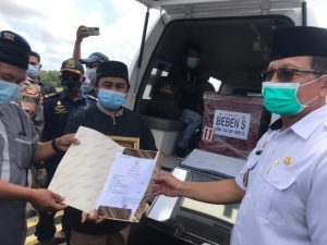 LINTASKAPUAS I KETAPANG – Wakil Bupati Ketapang, Drs. H. Suprapto S bersama unsur Forkompimda Kabupaten Ketapang menjemput kedatangan salah satu jenazah korban kecelakaan pesawat Sriwijaya Air SJ-182 (alm) Bapak Beben Sopian, di Bandara Rahadi Oesman Ketapang, Rabu (20/01/2021).