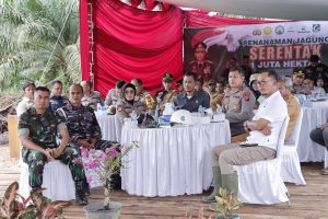 LINTASKAPUAS I KETAPANG – Kepolisian Resor (Polres) Ketapang bersama Forum Komunikasi Pimpinan Daerah (Forkopimda) Kabupaten Ketapang menghadiri launching penanaman jagung serentak 1 juta hektar secara virtual, di lokasi Kebun Sinar Karya Mandiri (SKM) Desa Mayak, Kecamatan Muara Pawan, Selasa (21/1/2025), pagi.