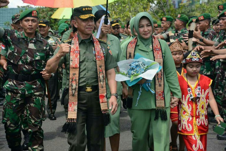Kepala Staf Angkatan Darat Jenderal TNI Mulyono disambut dengan Iyel-Iyel Penghormatan Prajurit saat menginjakkan kakinya di ke Batalyon Infanteri 642 Kapuas