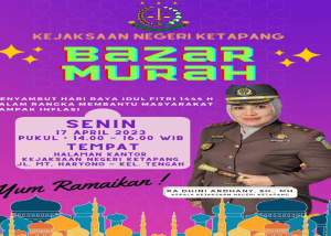 LINTASKAPUAS I KETAPANG,- Dalam rangka membantu masyarakat dari dampak inflasi menyambut Hari Raya Idul Fitri 1444 H. Kejaksaan Negeri (Kejari) Ketapang akan menggelar bazar murah. Kegiatan yang dipusatkan di halaman kantor Kejari Ketapang akan berlangsung pada Senin (17/4/2023) Pukul 14.00 sampai 16.00 WIB.