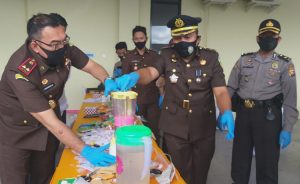 Kajari melanjutkan, pemusnahan barang bukti yang telah berkekuatan hukum tetap ini dilakukan dengan beberapa cara diantaranya memblender barang bukti narkoba seperti sabu, ekstasi hingga ganja, kemudian membakar dan melindas barang bukti lainnya menggunakan alat berat.