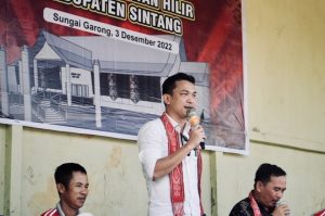 Ketua Dewan Perwakilan Rakyat Daerah (DPRD) Sintang Florensius Ronny dalam sambutannya menyampaikan ucapan selamat dan sukses atas dibangunnya rumah panjang(Rumah Betang) Desa Sungai Garong Kecamatan Kayan Hilir Kabupaten Sintang.