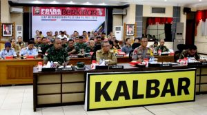 LINTASKAPUAS I PONTIANAK – Panglima Komando Daerah XII/Tanjungpura, Mayor Jenderal TNI Herman Asaribab bersama Forkopimda Provinsi Kalimantan Barat menggelar Video Conference Rapat Koordinasi Dalam Rangka Kesiapan Akhir Pengamanan Pemilu Serentak tahun 2019 di Ruang Graha Khatulistiwa, Mapolda Kalimantan Barat, Jalan Ahmad Yani, Pontianak, selasa(16/4)