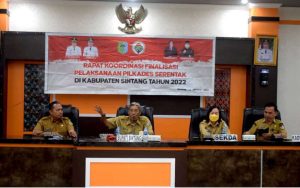 LINTASKAPUAS | SINTANG – Bupati Sintang Jarot Winarno menghimbau kepada seluruh panitia Pemilihan Kepala Desa (Pilkades) Serentak agar menjaga integritas dan profesional dalam menjalankan tugasnya berpegang teguh dengan aturan perundang-undangan dan menjunjung netralitas sebagai panitia. Hal tersebut disampaikan langsung saat rapat Koordinasi Finalisasi Pilkades Serentak Tahun 2022 di Balai Praja Kantor Bupati Sintang pada Senin, 10 Oktober 2022. LJarot Winarno menyampaikan bahwa Kabupaten Sintang sudah melaksanakan 3 kali Pilkades serentak dan semua berjalan dengan aman.