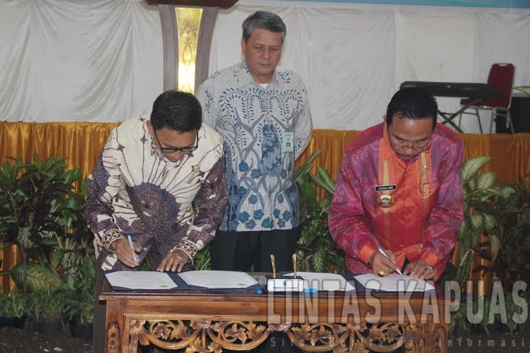Penandatanganan penyerahan Berkas laporan dari BPK – RI oleh Penjabat Bupati Sintang Dan Ketua DPRD Sintang