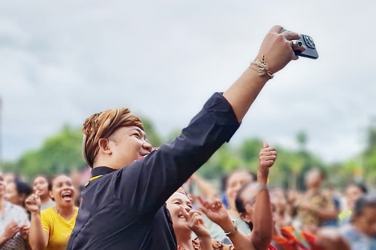 Foto Sekda Ketapang, Alexander Wilyo saat berswafoto dengan warga usai pembukaan turnamen sepakbola natal cup 2022 di Desa Sepakat Jaya Kecamatan Nanga Tayap. (Istimewa)