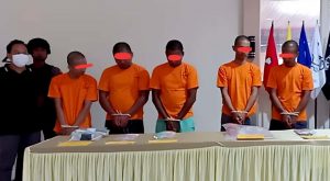 Adhe juga mengatakan, untuk mempertanggungjawabkan perbuatannya, Kelima Tersangka pengedar barang haram dijerat pasal 114 ayat 1 atau pasal 115 dan pasal 112 ayat uu ri nomor 35 tahun 2009 dengan kurungan penjara 5 – 10 tahun penjara.