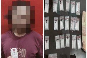Saat petugas melakukan penggeledahan dengan disaksikan oleh perangkat RT setempat, ditemukan sejumlah barang bukti berupa, 31 Kantong klip Bening Berisi Serbuk Atau kristal warna Putih yang diduga narkotika jenis sabu dengan Rincian 30 kantong klip bening berukuran kecil dan 1 (Satu) kantong klip bening berukuran besar dengan berat total keseluruhan 57.24 gram bruto. Selain itu petugas juga menemukan 1 (satu) Buah Bong, 1 (satu) Buah Korek Api, 1 (satu) Buah Timbangan Digital, 2 (dua) Buah Sendok dan 1 (satu) buah dopet warna hitam berisikan Uang Tunai Rp.12.125.000,-.