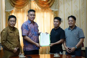 Foto: Ketua PWI Pokja Ketapang Ahmad Sofi bersama Ketua AJK, Theo Bernadhi, saat menyerahkan surat pernyataan sikap penolakan RUU Penyiaran kepada Ketua Komisi II DPRD Ketapang, Uti Royden Top. (Ist)
