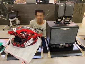 Akibat perbuatanya kini pelaku beserta barang bukti berupa sebuah Helm Merk GM Warna Merah Hitam Bertuliskan ” GM SUPER CROSS ” + Google, Speaker Merk Simbadda Warna Hitam 3 ( tiga ) buah dengan masing-masing 1 ( satu ) Speaker Ukuran Besar dan 2 ( dua ) Speaker Ukuran Kecil, telah diamankan di Mapolsek Delta Pawan guna proses lebih lanjut.