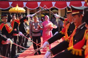 LINTASKAPUAS I KETAPANG,- Dalam rangka menyambut kedatangan Kapolres Ketapang yang baru yakni AKBP Tommy Ferdian, Kepolisian Resor Ketapang (Polres) Ketapang menggelar Tradisi Pedang Pora di halaman Mapolres Ketapang, Rabu (12/07/2023) pagi.