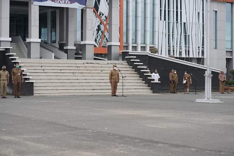 Foto sekda Ketapang, Alexander Wilyo, saat pipmpin Apel Senin. (Istimewa)