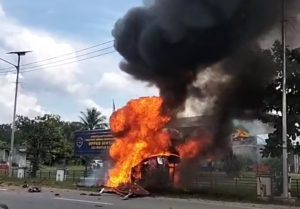 “Untuk saat ini kami masih melakukan pemeriksaan sejumlah saksi kejadian dan pengambilan CCTV dari milik warga yang berada disekitar kejadian serta koordinasi dengan pihak lain terkait dengan upaya evakuasi bangkai Truk yang sudah terbakar, ” pungkasnya.