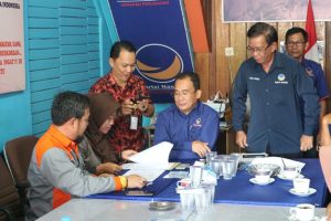 Kedatangan rombongan KPU Sintang yang dipimpin komisoner Ade M Iswadi sekitar pukul 11.00, disambut Ketua Dewan Pimpinan Daerah (DPD) NasDem Sintang Herry Samsudin, Sekretaris Terry Ibrahim bersama pengurus partai. Tampak hadir anggota DPRD Sintang dari Fraksi NasDem DPRD diantaranya Florensius Ronny, Hermanto, Honoratus Guntur dan Romeo.