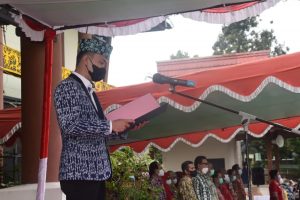 Ketua DPRD Sintang, Florensius Ronny memimpin upacara peringatan hari ulang tahun Pemerintah provinsi Kalimantan Barat