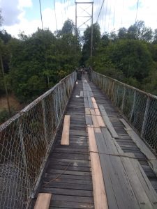 “Kondisi sekarang sangat memprihatinkan karena lantai jembatan gantung sudah termakan usia dan kemiringan jembatan juga sangat terasa, untuk itu warga desa yang dimotori bapak Efendi dan bapak Basri selaku kades bersama warga secara swadaya memperbaiki kondisi lantai seadanya,” Ungkap Herman kepada lintaskapuas Sabtu, 6 Maret 2021.
